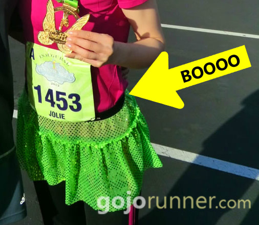 I say "came close," because I did purchase my first sparkle skirt for this race -- my 2nd race ever -- but then, I committed a cardinal sin.